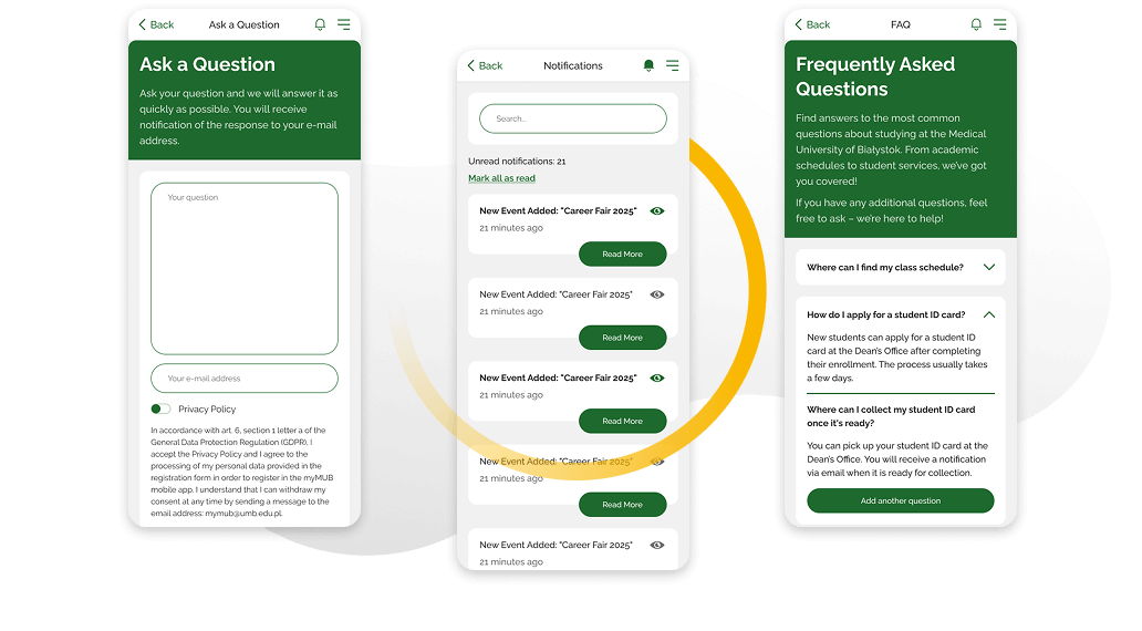 After the expansion, the app introduces several new features designed to make student life easier. A new FAQ section provides quick answers to common questions, helping students navigate academic and administrative matters with ease.